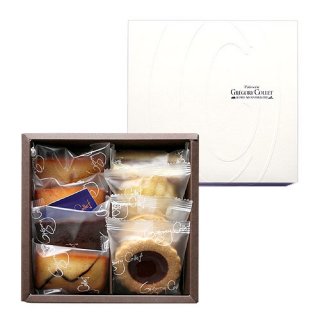 人気のトリュフケーキはショコラ生地の中にトリュフ・オ・ショコラが入った、チョコレート好きの方にはたまらない一品です。また、ガトー・オ・マロンはしっとりとしたマロンペースト入りの生地に2種類の栗が入り、豊かな風味を感じられます。他に入っているのは、アーモンドとバターが香るフィナンシェや、優しい味わいのマドレーヌ、ナッツとザラメがアクセントのガレットなど定番のお菓子です。