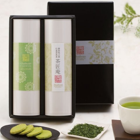 水だし緑茶と、生地にお茶を練りこんだどらやきがセットになったこだわりの和菓子セットです。モダンでおしゃれな見た目は、和菓子ながら若い方に好評で、相手の方の年齢を問わず贈ることができます。