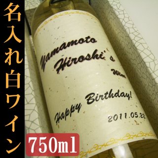 こちらの名入れ白ワインはラベルの文字が大きく、日本語書体だけでなくワインとイメージの合う英語書体も選べるのが特徴です。ラベルの限られた範囲ながら、名前の他にメッセージや日付も記載できる点が支持を集めています。
