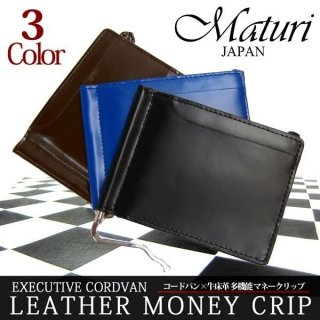 Maturi コードバン×牛床革 マネークリップ 小銭入れ付き