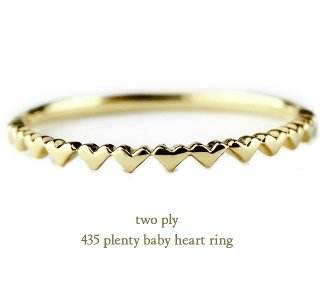 このハートリングは、13ピースのプチサイズのハートが横に連なったデザインが特徴です。18金の極小ハートが連なったデザインは、大人の女性にもつけやすいと支持を集めています。