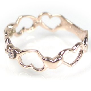こちらのリングは、レースのようなハートモチーフが目を引く繊細なデザインが特徴です。ピンクゴールドの上質な素材感は大人の女性にも相応しいと多く選ばれています。