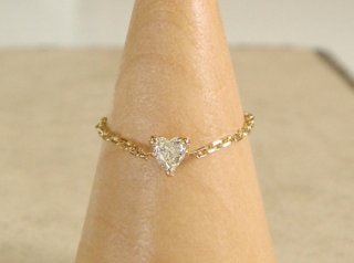 チェーンタイプのデザインが珍しいこちらの指輪は、ハート型に加工されたダイヤモンドの輝きが魅力です。熟練した職人のカッティングで可愛らしいハートにシェイプされており、美しい輝きは特別感を演出します。