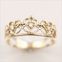 こちらは、ハートのようにデザインされた王冠が連なっており、つける度にプリンセスのような気分が味わえると人気のレディースリングです。イエローゴールドの輝きと存在感のあるデザインは指元を華やかに彩ります。