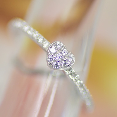合計0.2カラットのダイヤモンドが施されたハート部分は、こだわりのパヴェセッティングで上質な輝きを演出します。また、裏打ちのないリング部分は指にはめた際の違和感がなく快適なつけ心地です。