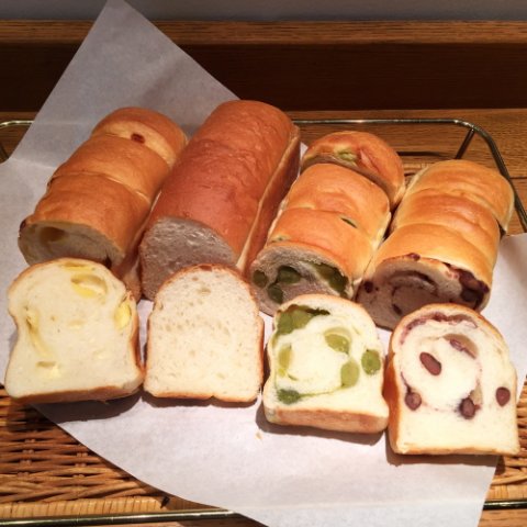 あずきや抹茶などの和風フレーバーのパンも、おやつの時間にお茶と一緒に楽しめます。