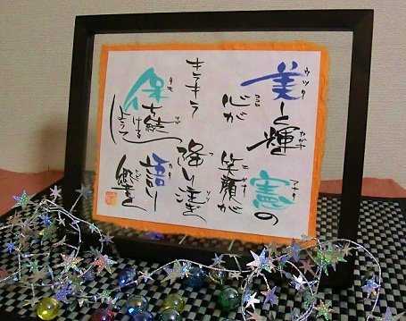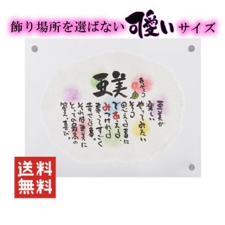 心に響く素敵な言葉を使った名前詩は、岡山県で活躍している筆文字アーティストの作品です。サイズは24cm×27cmの色紙ですが、有料オプションで額付きに変更することもできます。