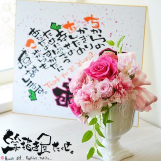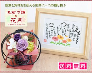 こちらでは、花がセットになった名前詩を4品ご紹介します。和風やブーケ調など様々なタイプのアレンジメントを揃っていますので、性別や年代に合わせて選んでください。