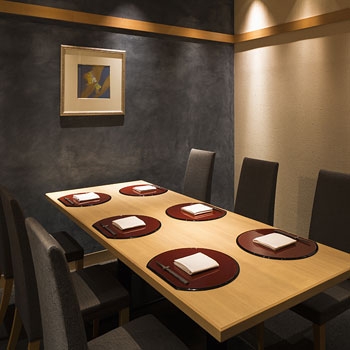 テーブル席には、座り心地の良いベンチソファーと肘掛付きのロースツールが置かれています。シンプルながら和モダンの上質な空間は、目上の方の送別会に選ぶと喜ばれます。