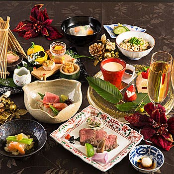 珍味や高級食材を使った豪華なクリスマスのコースは、メインディッシュを肉料理と魚料理から選ぶことができます。装飾もクリスマス仕様になり、特別なムードを演出してくれます。