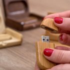 インパクトのあるものをお探しなら、温もりのある木製の本体に抜き文字で名入れされたUSBメモリがおすすめです。高級家具にも使われるケヤキと、上品な雰囲気のウォールナットの2種類から選べます。