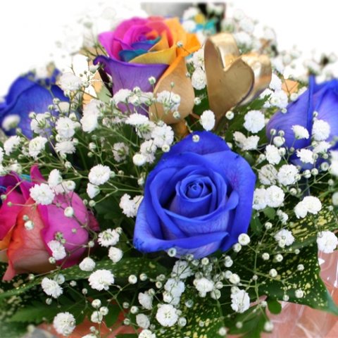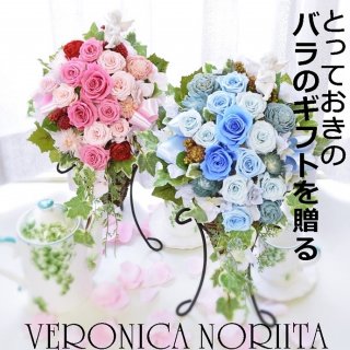 洗練された雰囲気のブルーや女性的なピンク、上品なパープルや元気の出るイエローなど、魅力的なカラーの花ばかりです。エンジェルやウェディングベアー、胡蝶蘭もオプションで加えることができ、より豪華さを演出できます。