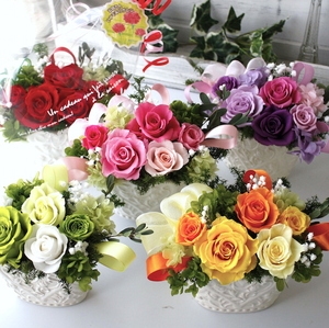 そして、ラベンダー・ブルー・ローズ・グリーン・サーモンなど、他にないニュアンスカラーも豊富です。生花を含んでいないため水やりなどの必要がなく、花の知識がない方にも安心して贈ることができます。