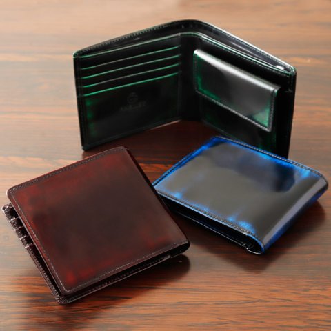 革の種類やカラーがさまざまで、使い勝手の良さにも定評がある二つ折り財布