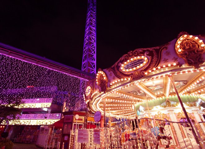 日本最古の遊園地として知られる浅草はなやしきには、日本最古のローラーコースターがあり、常にカップルや家族連れでにぎわいます。50万球のイルミネーションが輝く夜の遊園地ルミヤシキは、スカイツリーも眺められたりと、恋人たちのデートにぴったりです。