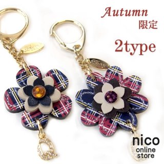 nico チェック柄イニシャルパーツ付き 5ベンフラワーチャーム