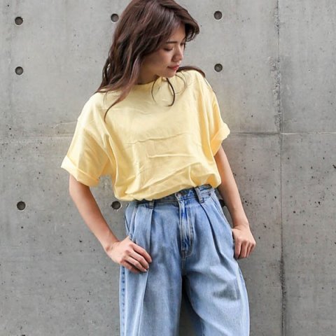- 無地のTシャツは、どんなコーディネートにも使える定番アイテムとして人気