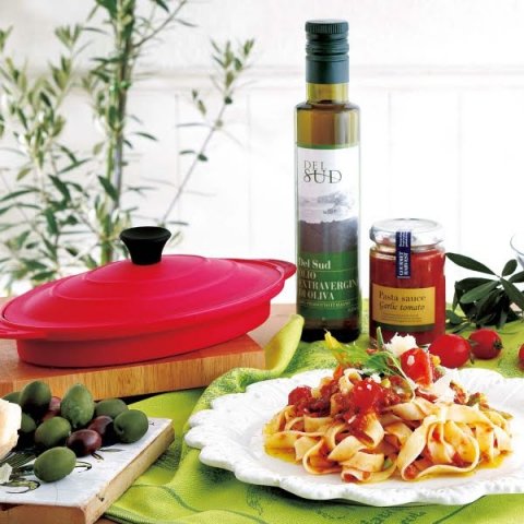 こちらのシリコンスチーマー・パスタセットは、シリコンスチーマーとパスタのセットで見栄えが良くギフトに向いています。シリコンスチーマーを使ってさっそくパスタを調理できるのがポイントです。
