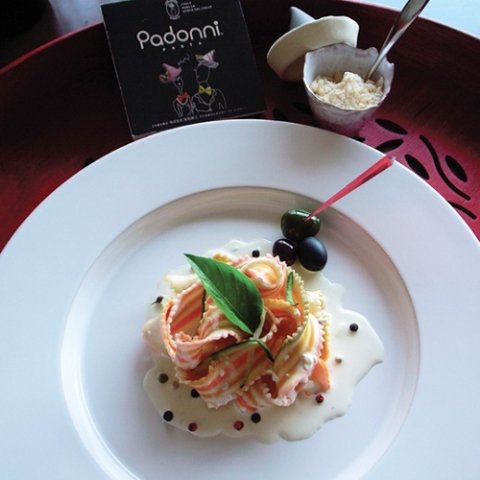 パドンニのパスタは、食べ物からとった天然色素を使用した、まるで飴細工のようなカラフルさが特徴です。形も帽子やハート、リボンなど可愛らしく、おしゃれなパスタとして人気があります。